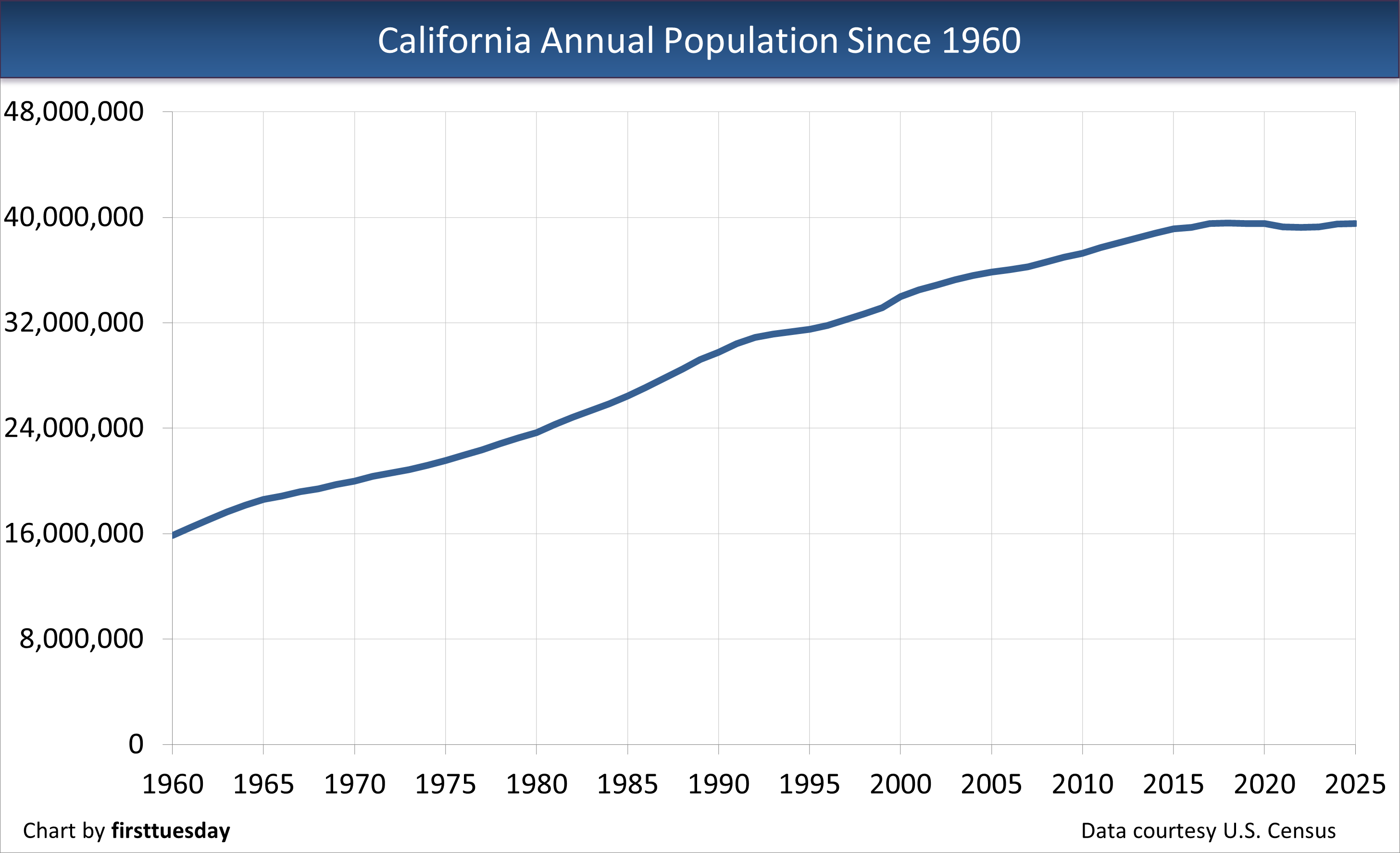 In fact, California’s population has steadily increased each year, despite lagging construction which fails to support any population growth.