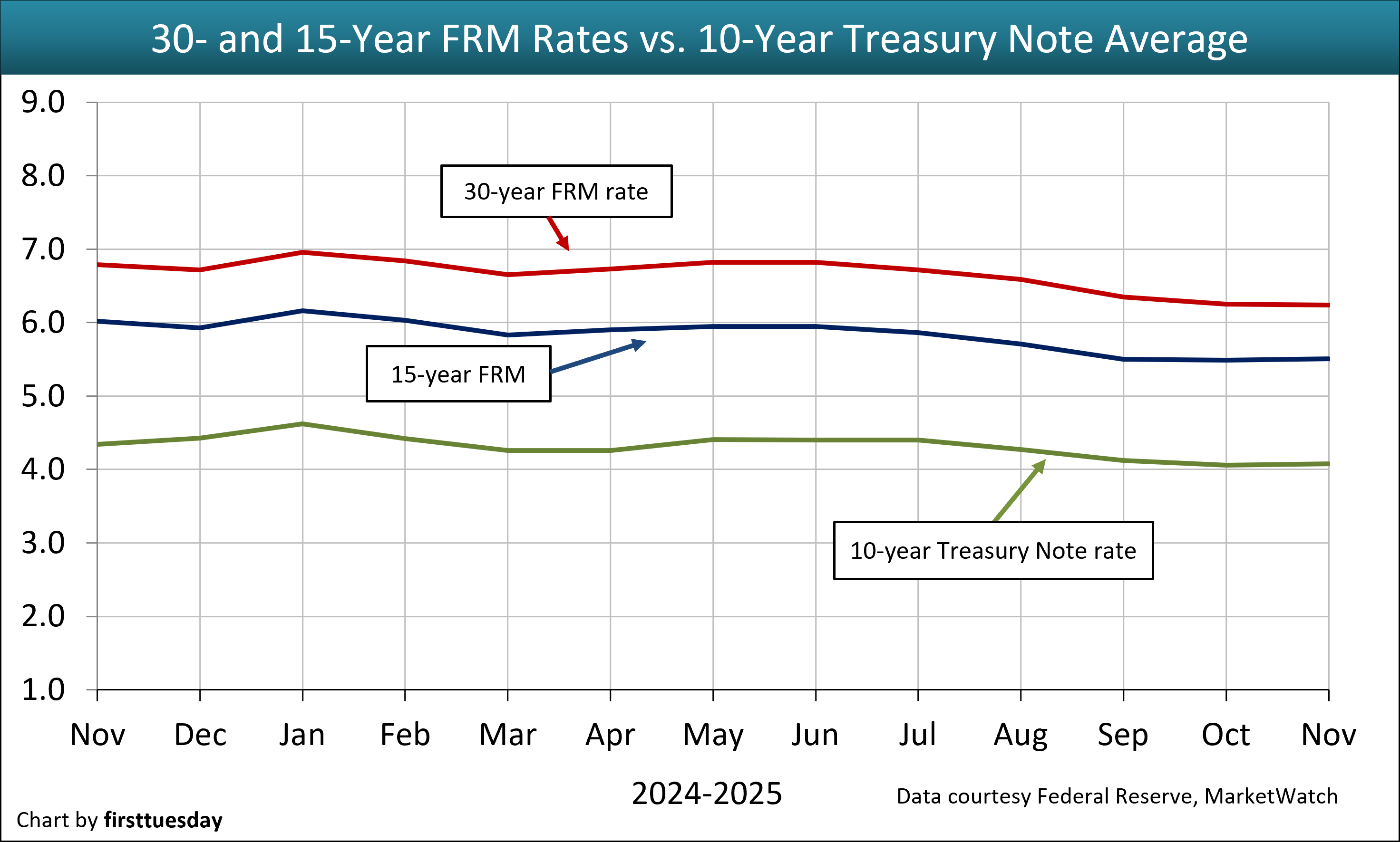 Avg 15-year November 2025 5.51% | Avg 30-year November 2025 6.24% | Avg 10-year T-Note November 2025 4.08% |