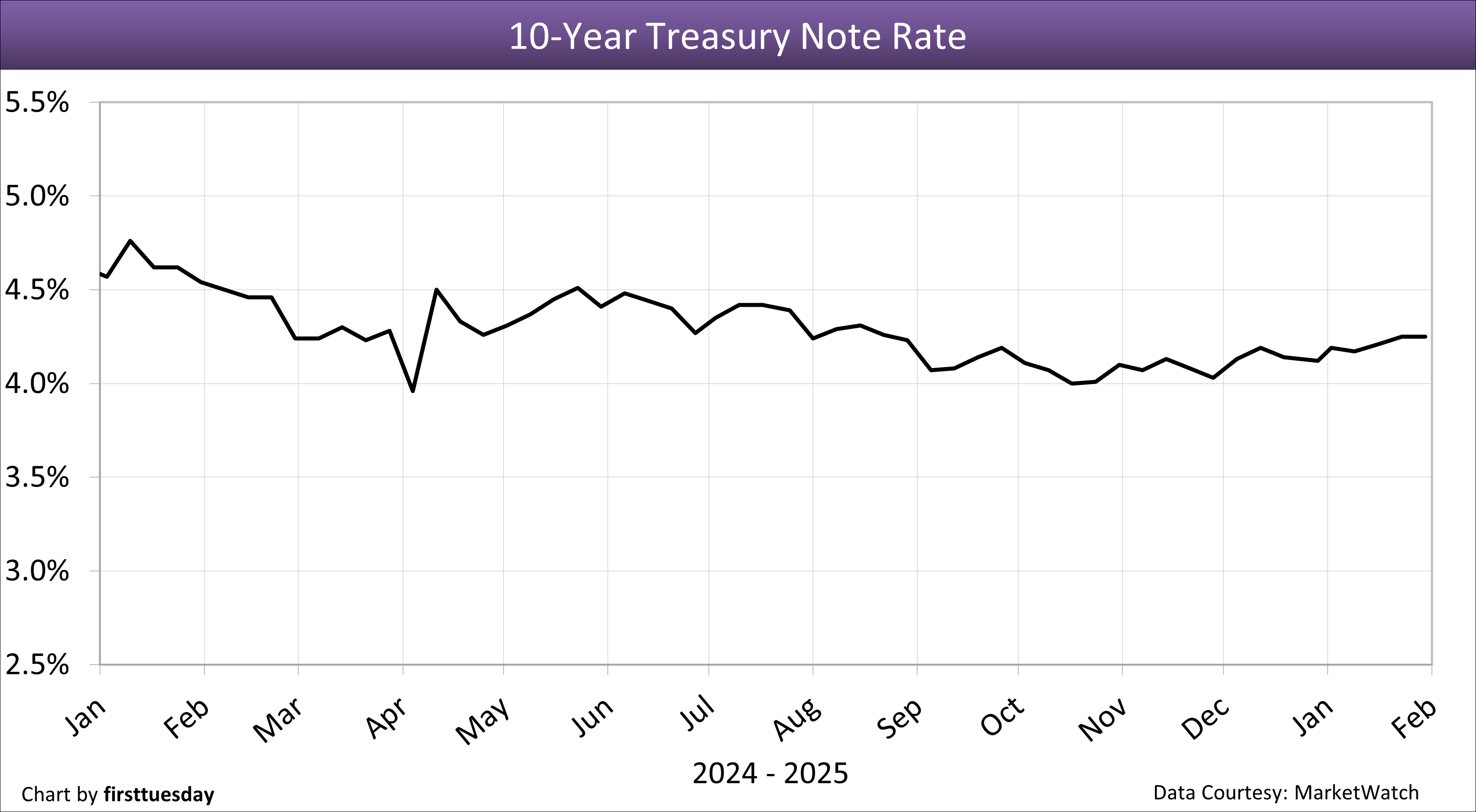 5. 10-year Treasury note rate — Chart update 1/30/2026