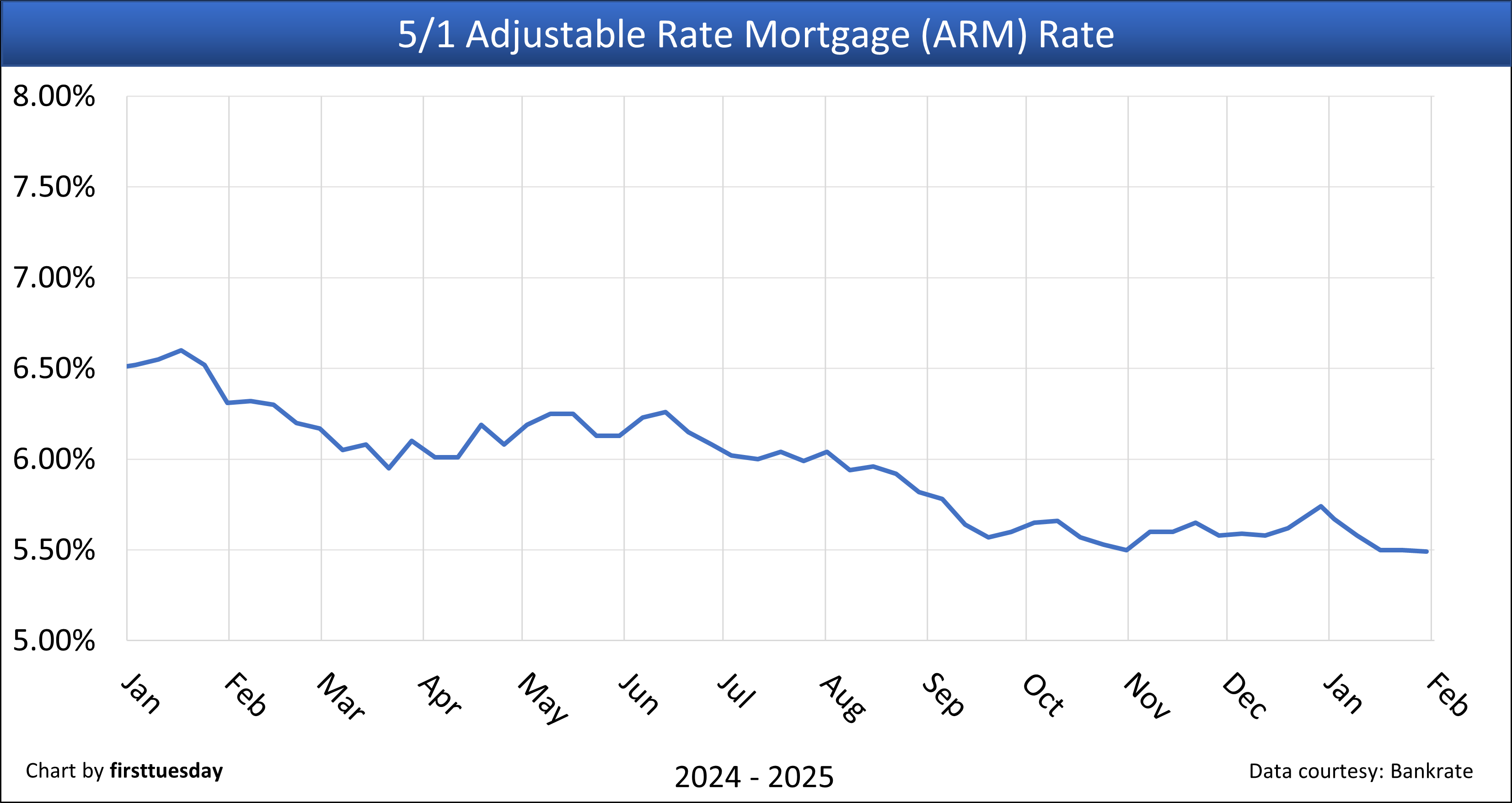 4. 5/1 adjustable rate mortgage (ARM) rate, monthly — Chart update 1/30/2026