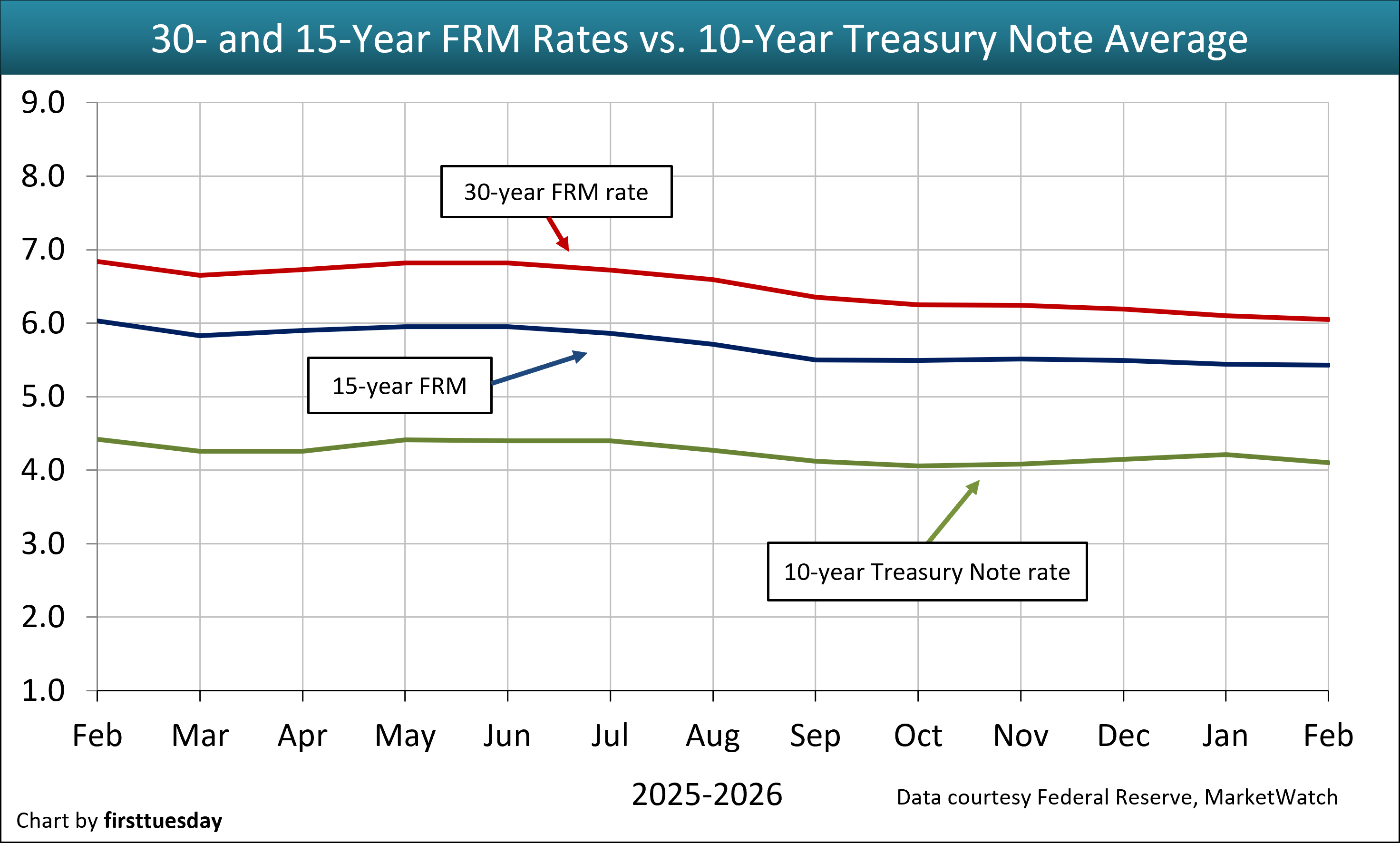 Avg 15-year February 2026 5.43% | Avg 30-year February 2026 6.05% | Avg 10-year T-Note February 2026 4.10% |
