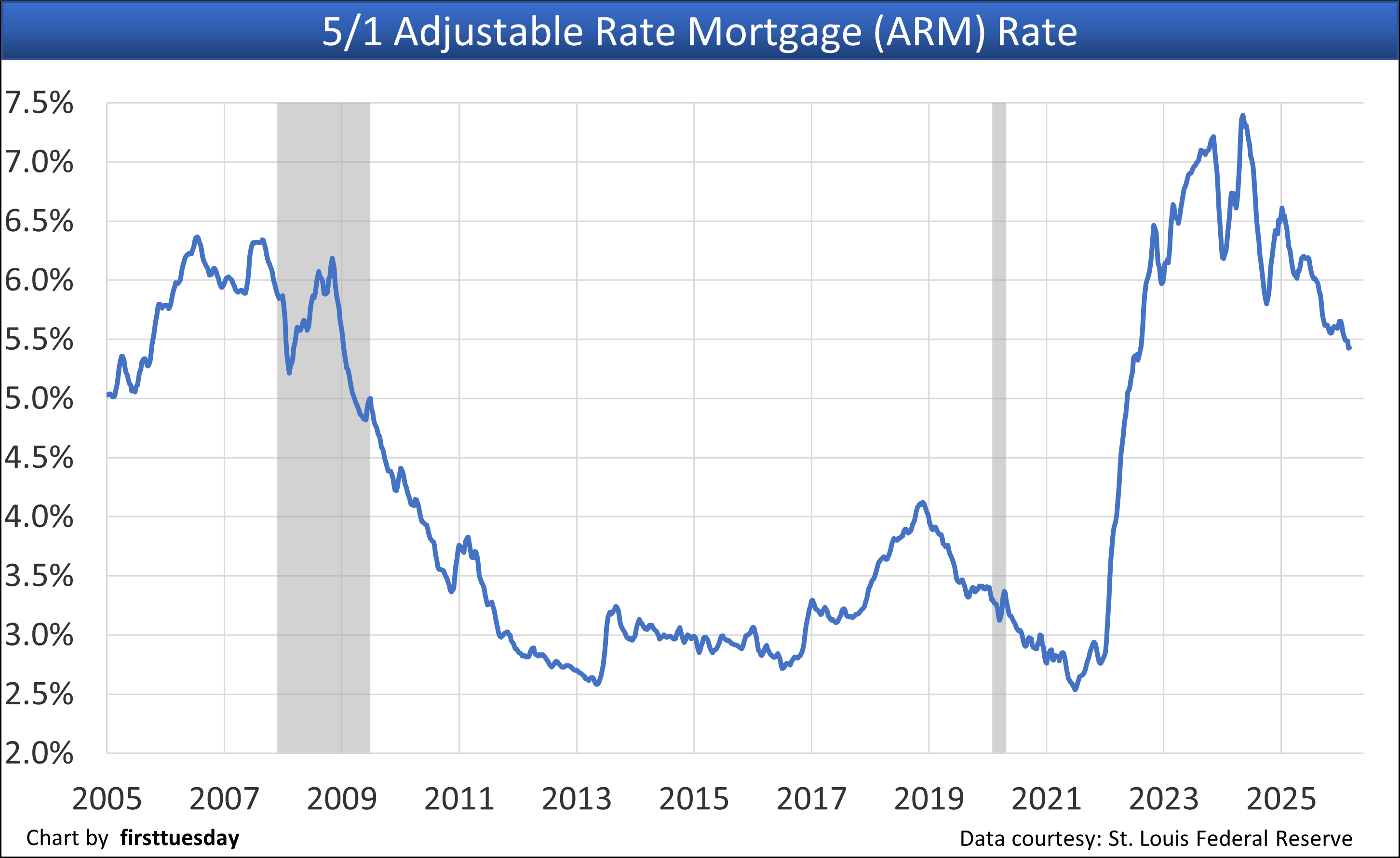 4. 5/1 adjustable rate mortgage (ARM) rate, monthly — Chart update 3/6/2026