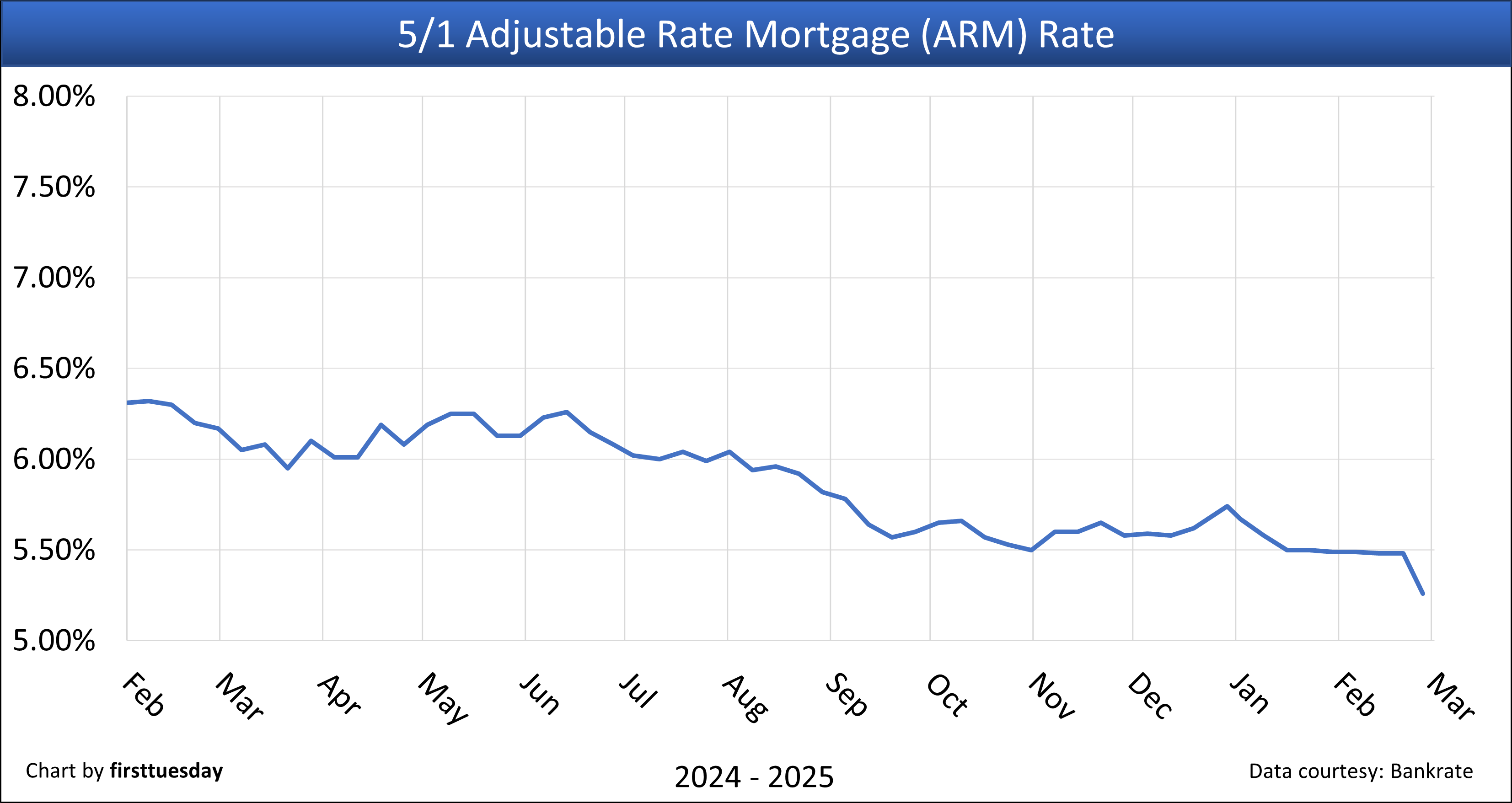 The average monthly rate on adjustable rate mortgages (ARMs) plunged to 5.26% on February 26, 2026.