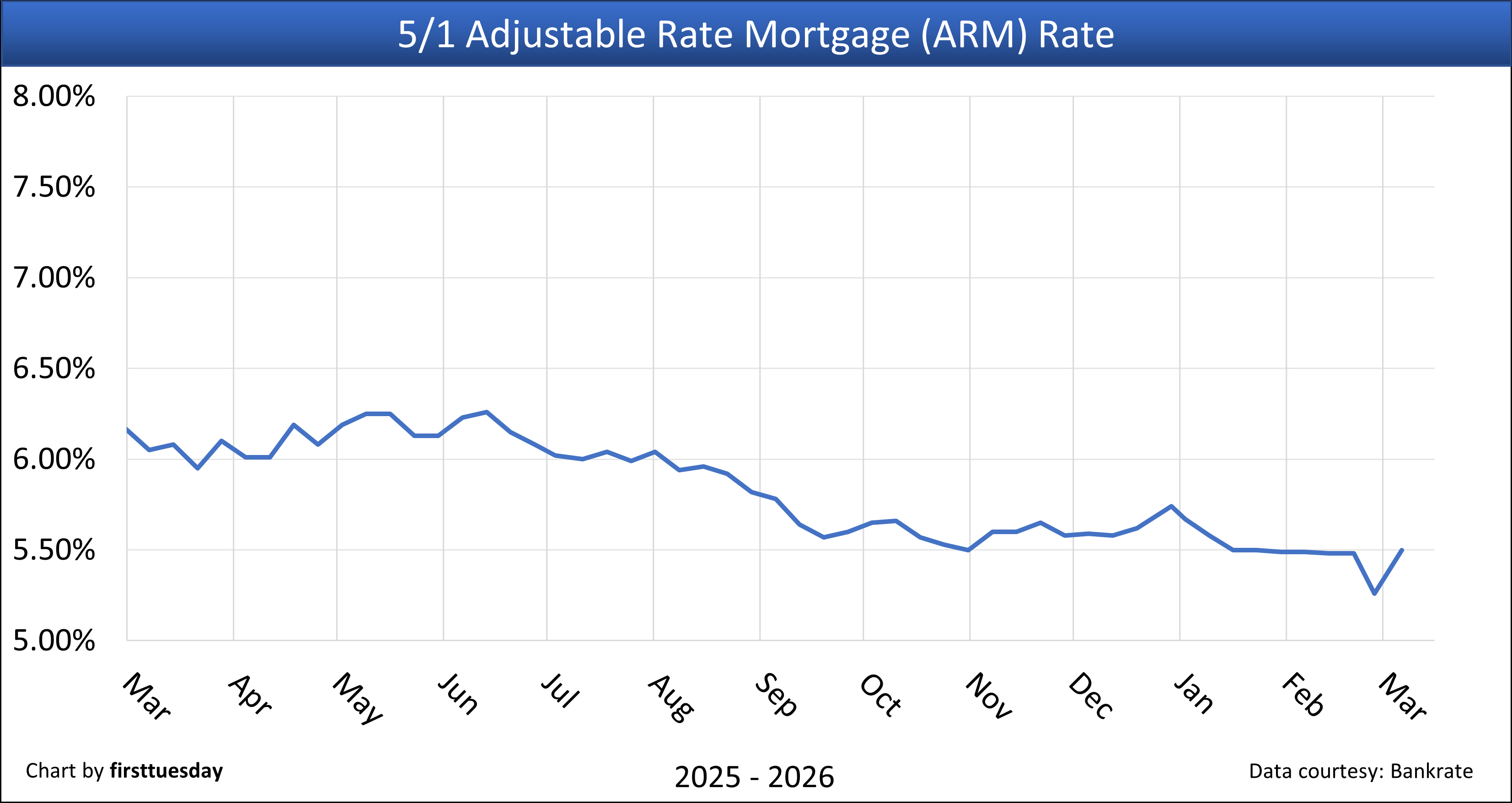 The average monthly rate on adjustable rate mortgages (ARMs) bounced up to 5.50% on March 6, 2026.