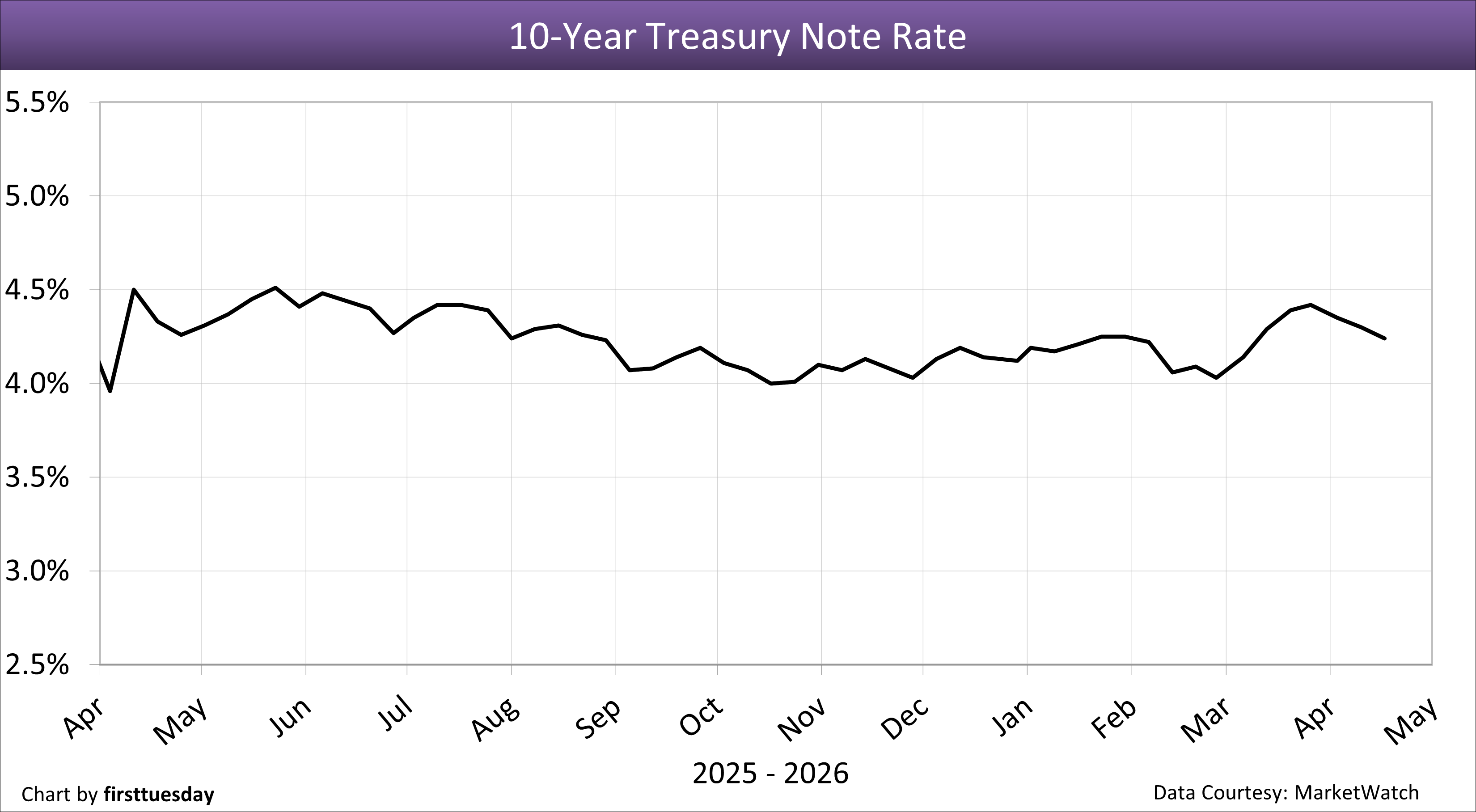 5. 10-year Treasury note rate — Chart update 4/17/2026