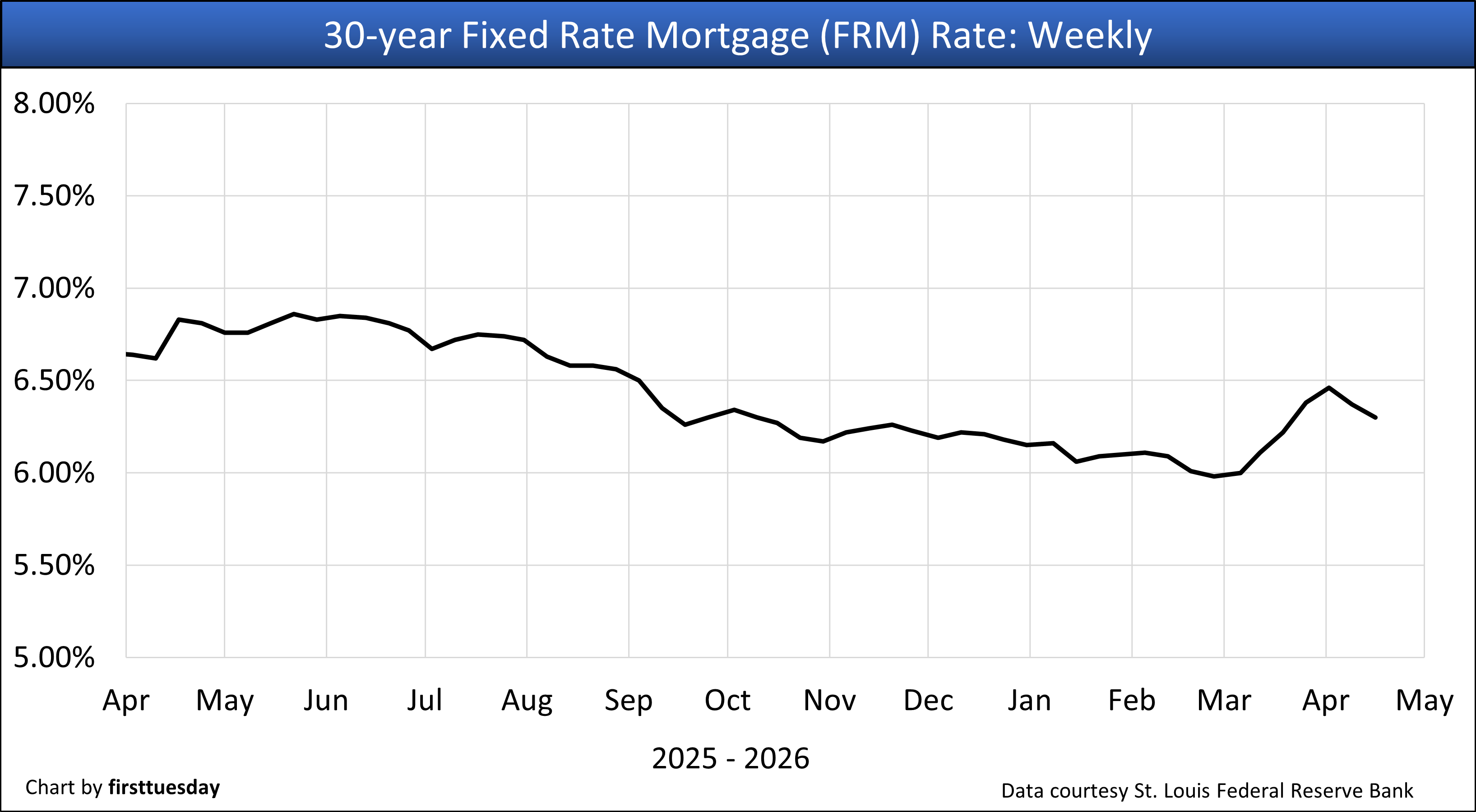 1. 30-year fixed rate mortgage (FRM) rate, weekly— Chart update 4/17/2026