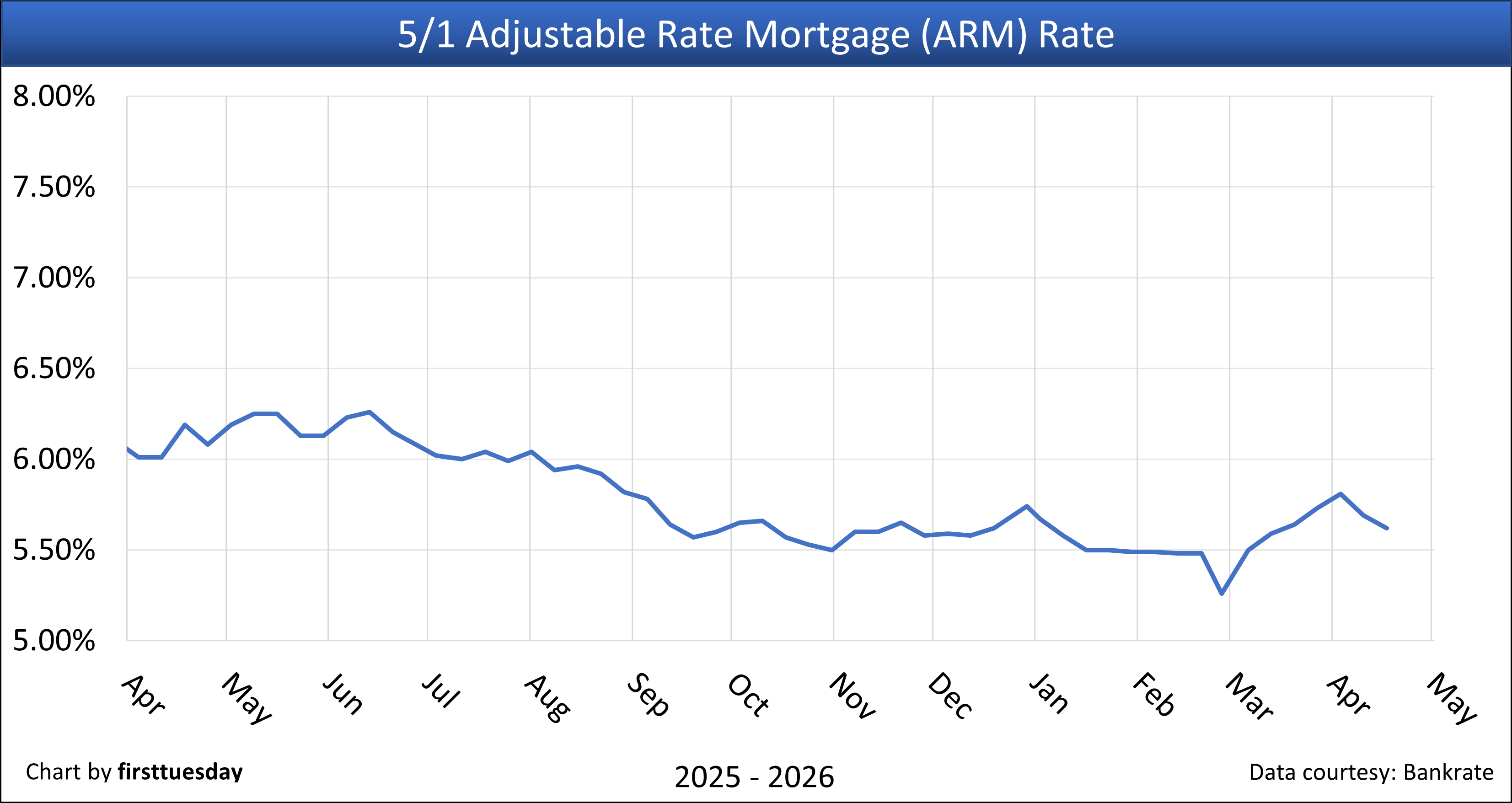 4. 5/1 adjustable rate mortgage (ARM) rate, monthly — Chart update 4/3/2026