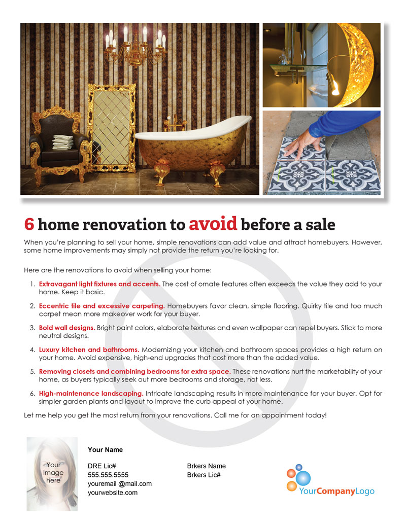 Let me help you get the most return from your renovations. Call me for an appointment today!