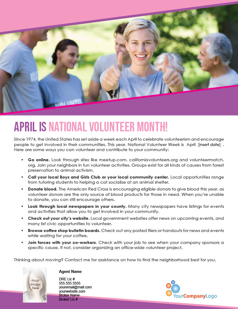 Since 1974, the United States has set aside a week each April to celebrate volunteerism and encourage people to get involved in their communities. This year, National Volunteer Week is [insert date]. Here are some ways you can volunteer and contribute to your community: