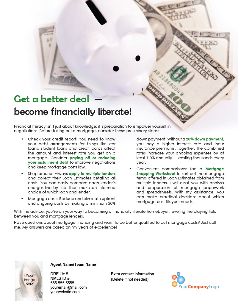 With this advice, you’re on your way to becoming a financially literate homebuyer, leveling the playing field between you and mortgage lenders.