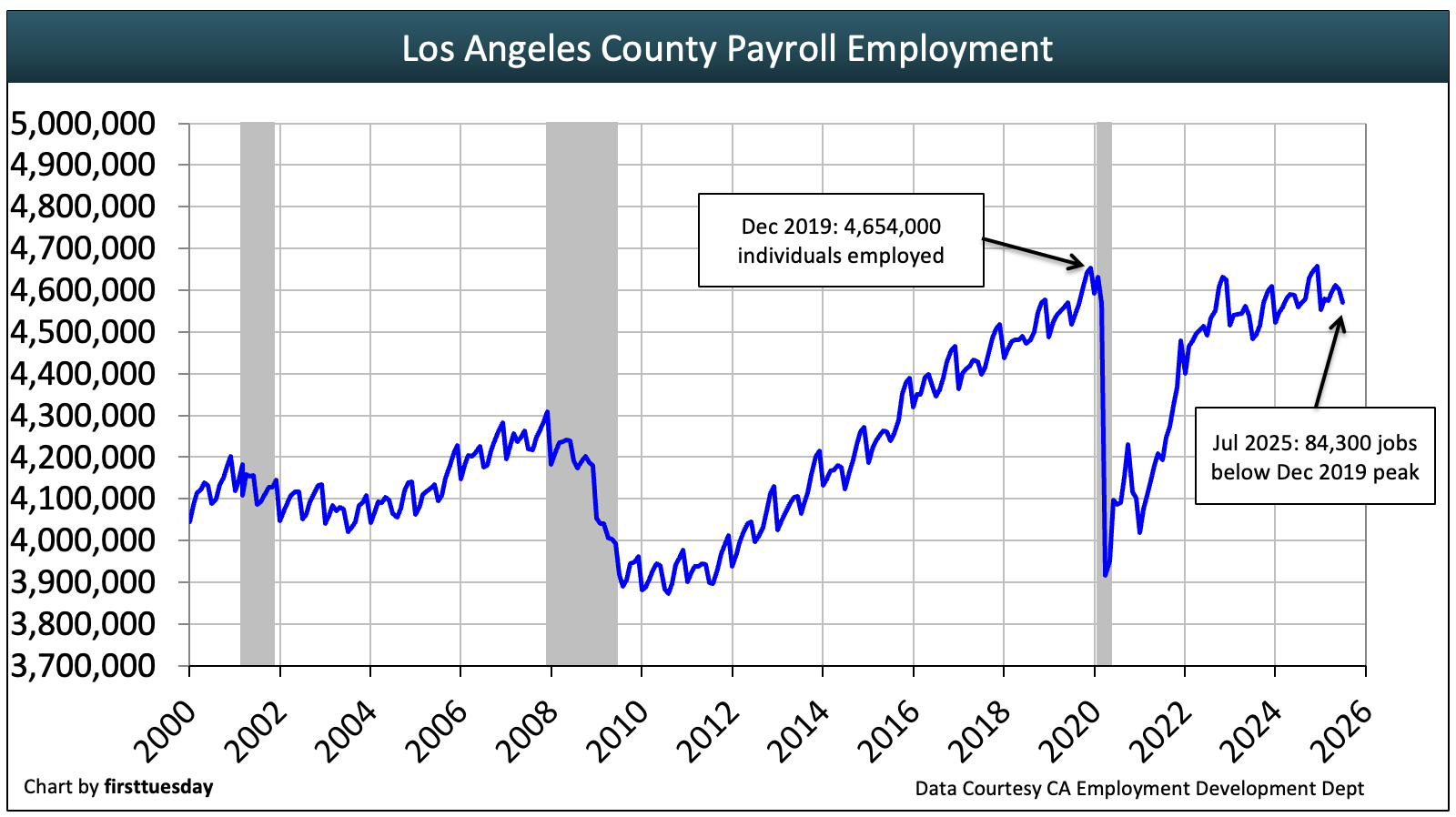 Los Angeles County employment | 4,569,700 | 4,559,200 | +0.2% |