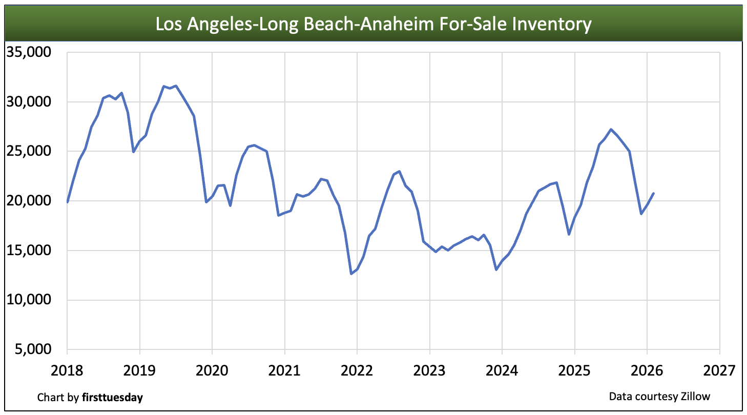 | LA County for-sale inventory | 20,700 | 19,600 | +6% |