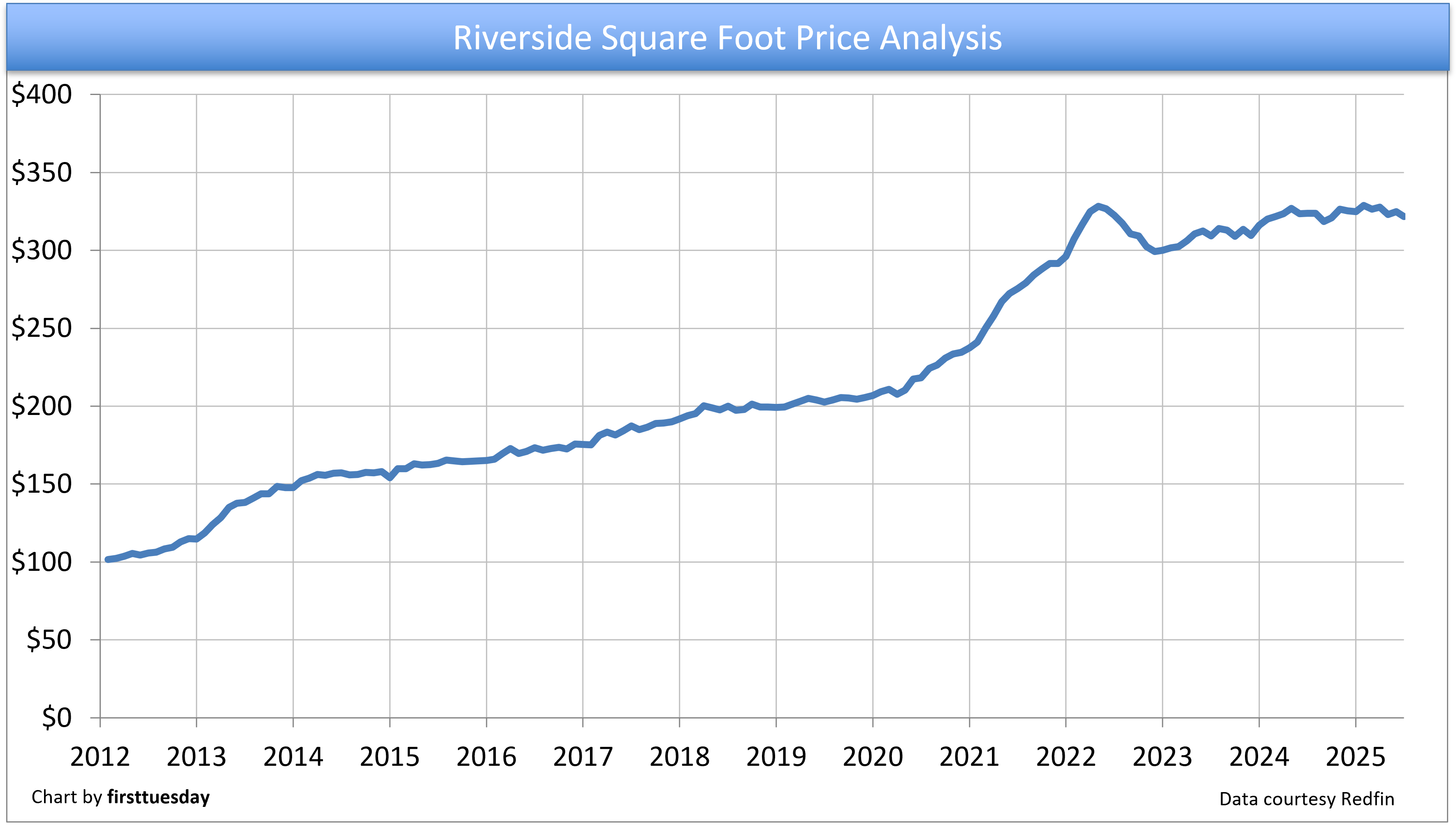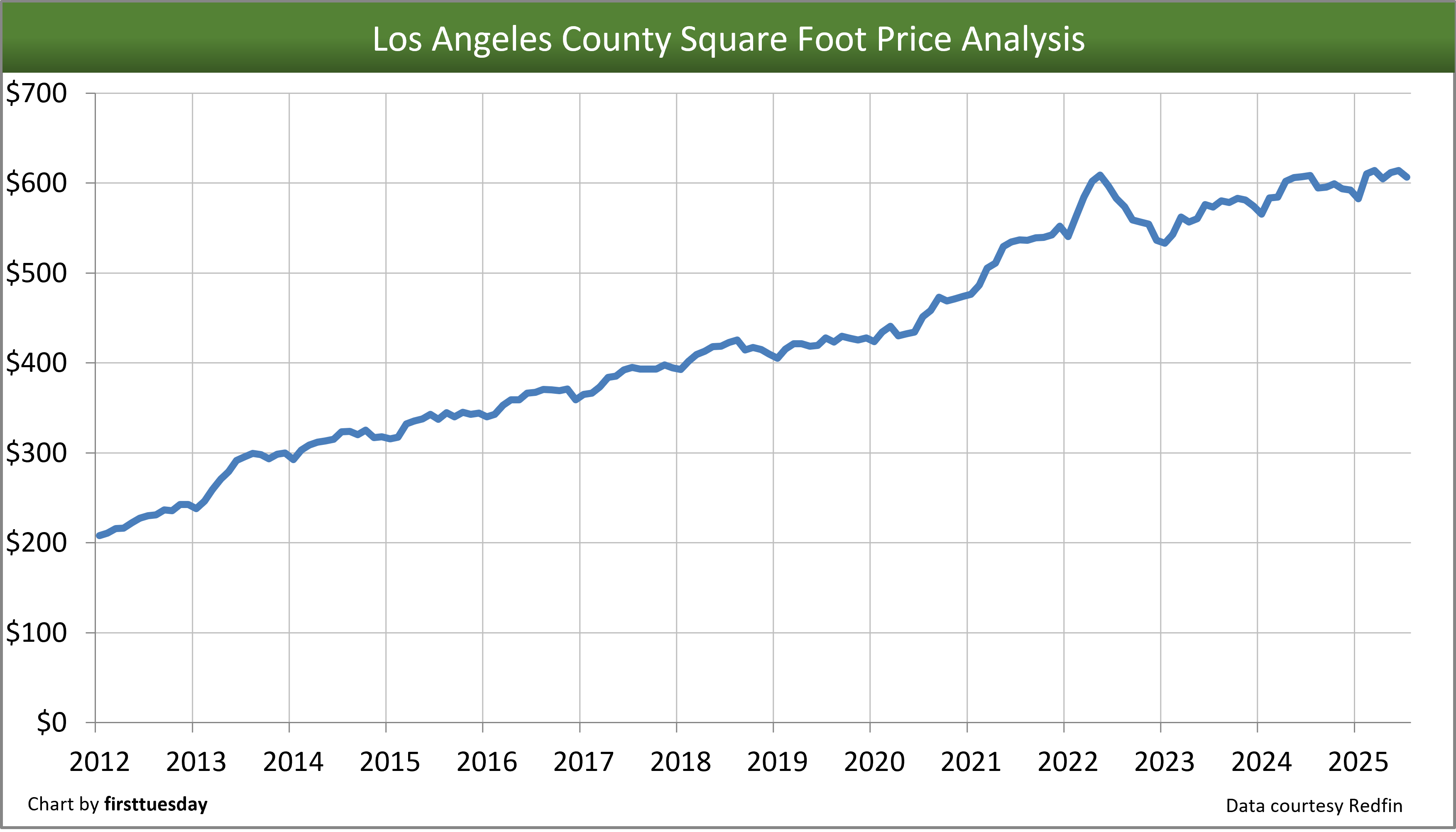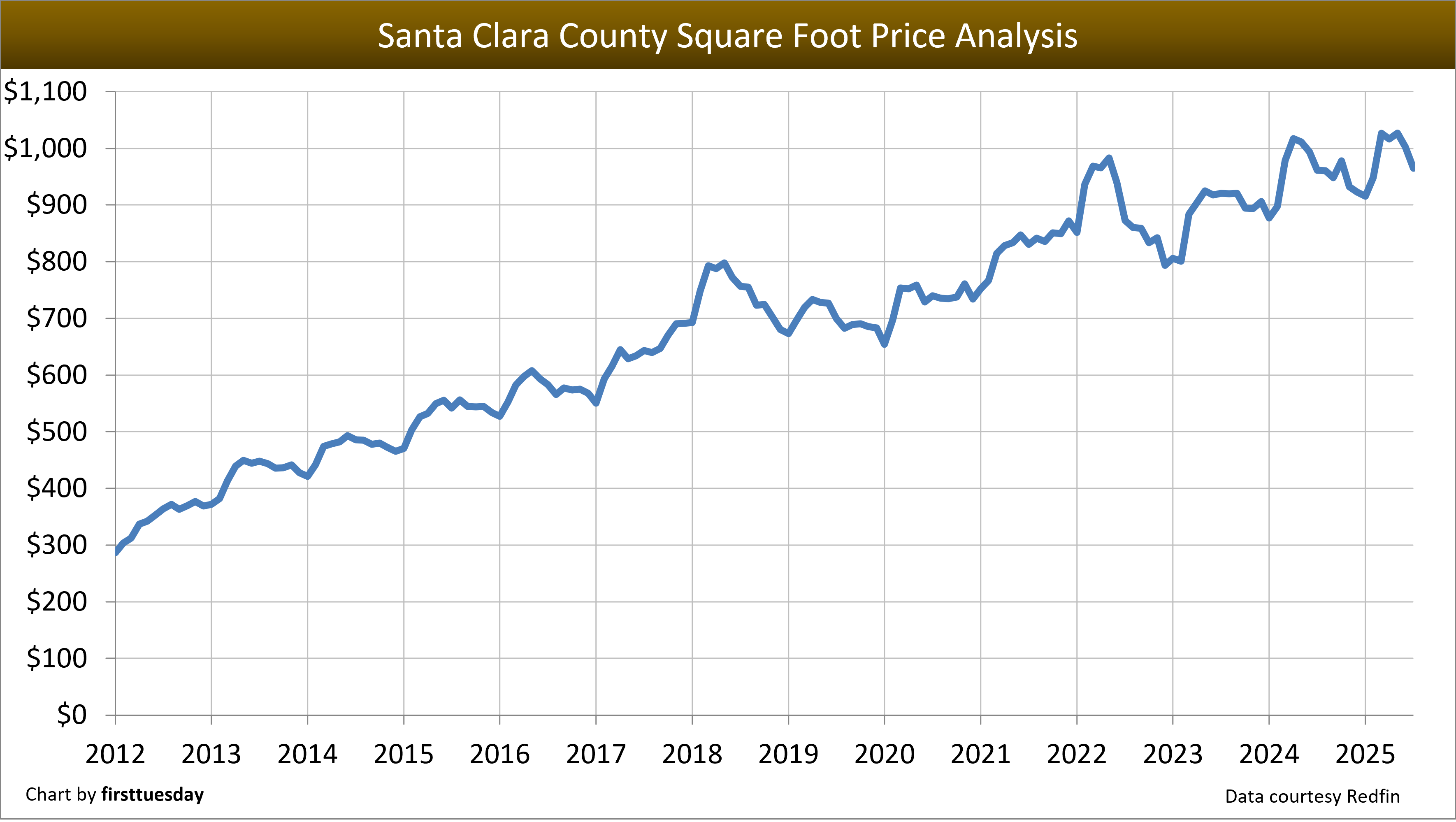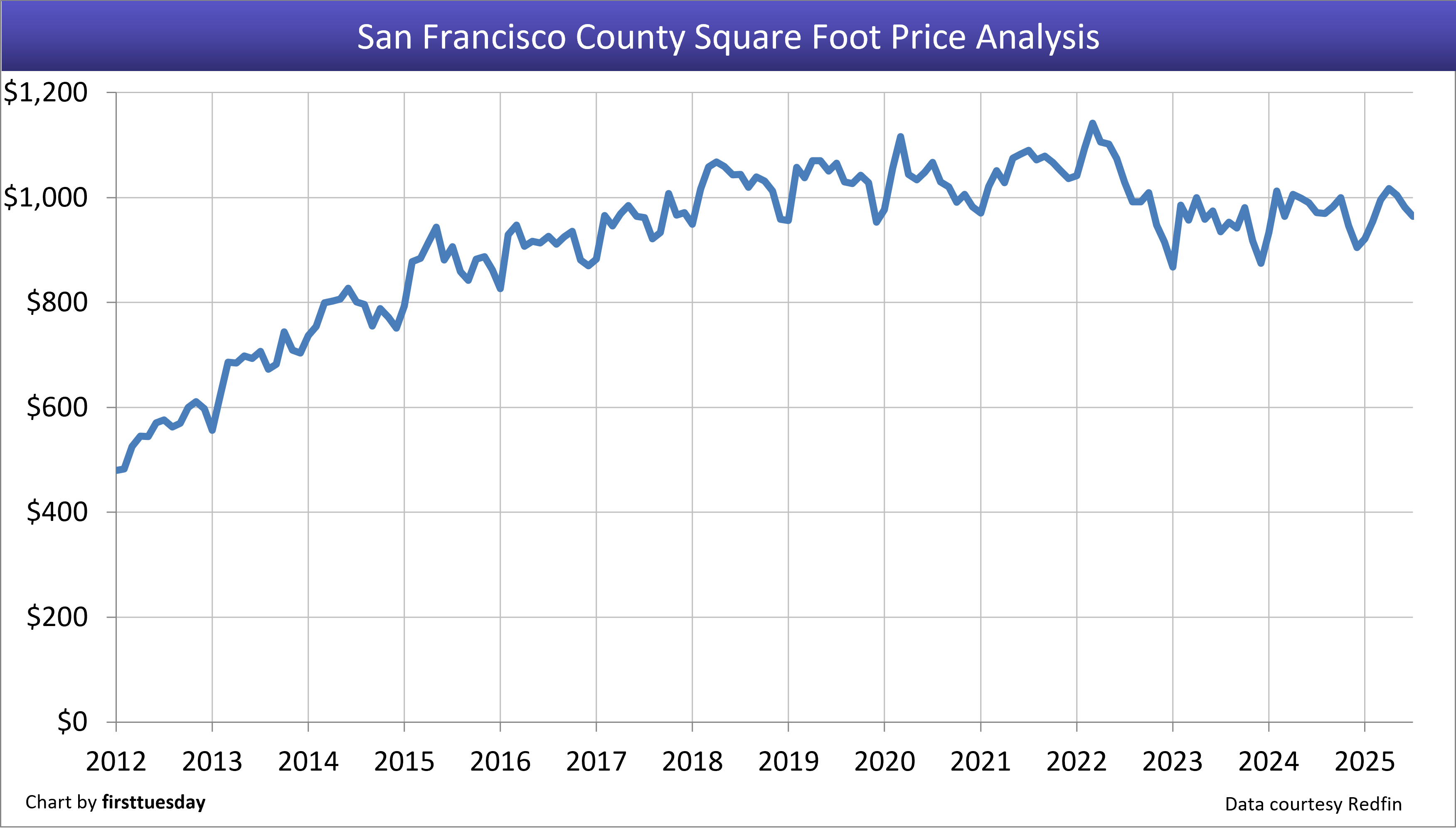 This shift downward during the spring bounce, though quickly resolved, indicates an underlying weakness in pricing based on this stalled price-per-square-footage trend.